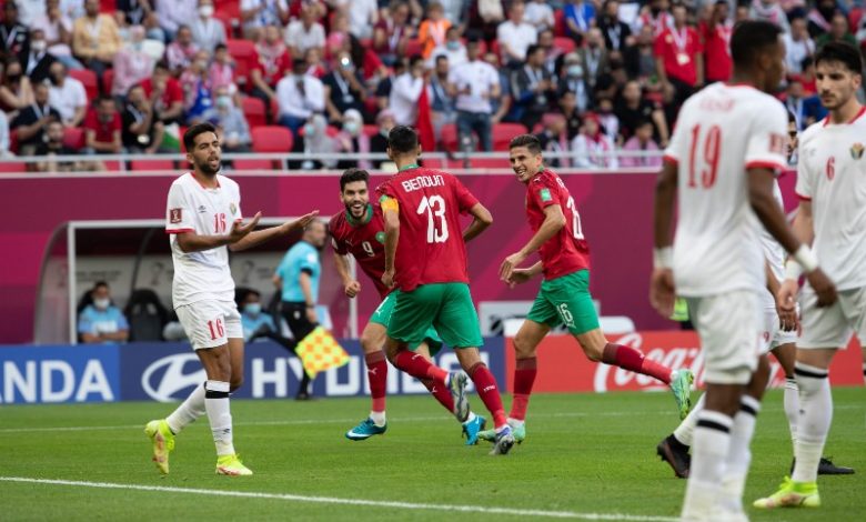 ضمن منتخب المغرب التأهل للدور ربع النهائي من بطولة كأس العرب المُقامة بالعاصمة القطرية الدوحة، بعدما حقق فوزًا عريضًا على حساب نظيره الأردني بأربعة أهداف نظيفة، في المباراة التي جمعت بينهما ظهر اليوم، لحساب لقاءات الجولة الثانية من دور المجموعات عن المجموعة الثالثة ببطولة كأس العرب.