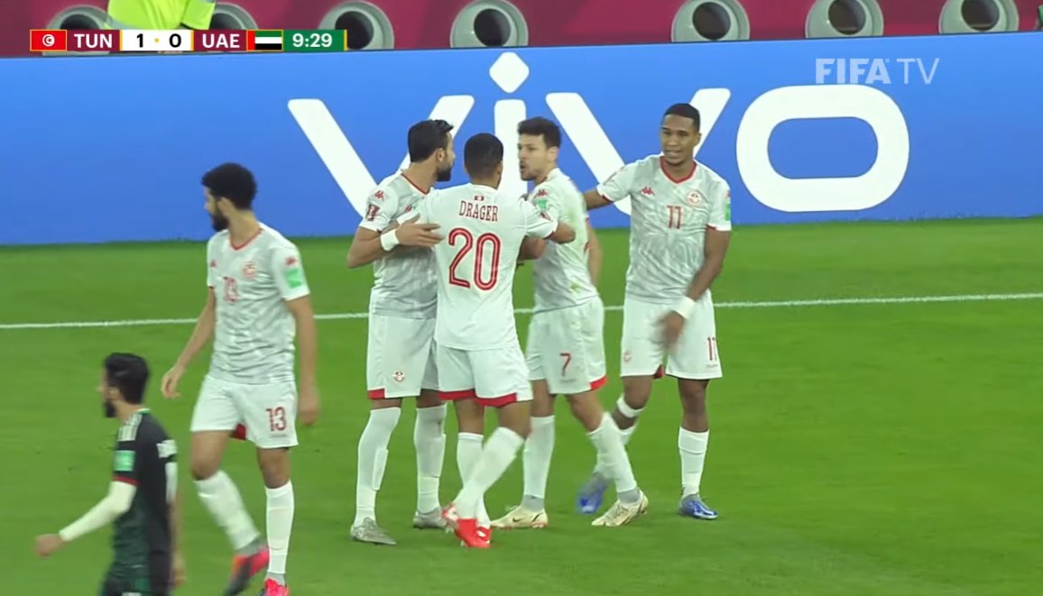 وسجل سيف الدين الجزيري هدف التأهل لمنتخب تونس أمام المنتخب الأماراتي في الدقيقة 10 من اللقاء، بعد مهارة فردية وتوغل من يوسف المساكني داخل منطقة الجزاء وراوغ أكثر من مدافع ثم راوغ حارس المرمى لتصل للجزيري وسددها بسهولة في المرمى الخالي.