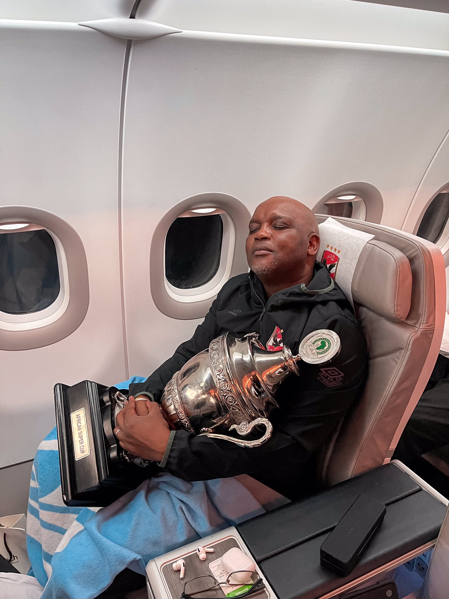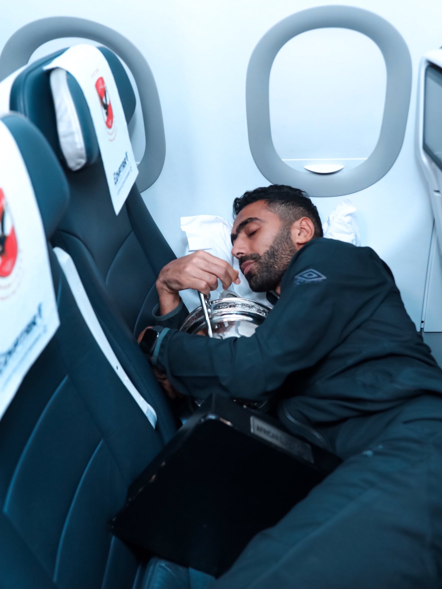 نشر الحساب الرسمي للنادي الأهلي صور للاعبي الفريق الأول لكرة القدم بالقلعة الحمراء أثناء نومهم في حضن كأس السوبر الأفريقي في الطائرة خلال رحلة عودتهم من قطر بعد التتويج بلقب الثامن في تاريخ النادي و الثاني على التوالي على حساب نادي الرجاء البيضاوي المغربي في اللقاء الذي جمع بينهم مساء اليوم الأربعاء، على ملعب أحمد بن علي في الدوحة.