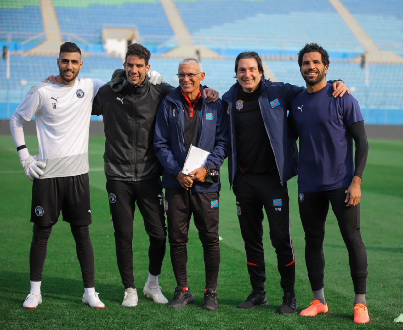 حرص الأرجنتيني هيكتور كوبر مدرب منتخب مصر السابق ومنتخب الكونغو الديمقراطية الحالي على مصافحة لاعبي فريق بيراميدز قبل المباراة الودية بين الفريقين والتي تنطلق بعد قليل.