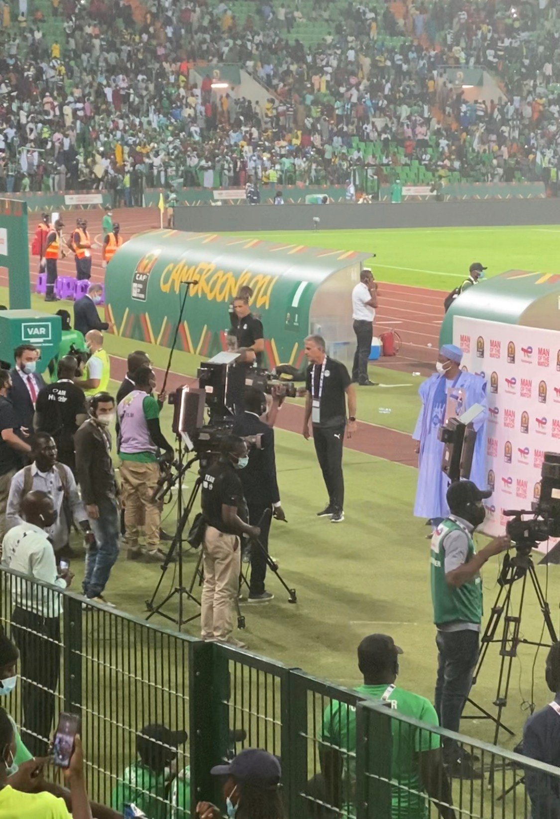 وحدثت مشادة بين البرتغالي كارلوس كيروش المدير الفني لمنتخب مصر وأحد الجماهير بعد نهاية المباراة، قبل إن يتدخل المنظمون ويفضوا المشادة.