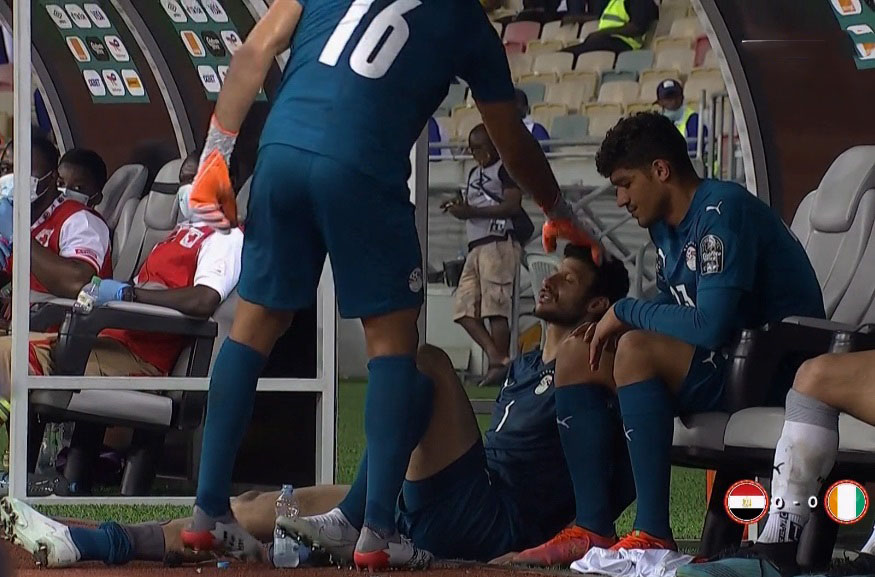 تعرض محمد الشناوي حارس مرمى الأهلي ومنتخب مصر للإصابة خلال مباراة منتخب الفراعنة ضد كوت ديفوار المقامة حالياً ضمن منافسات دور الستة عشر لبطوله كاس امم افريقيا.