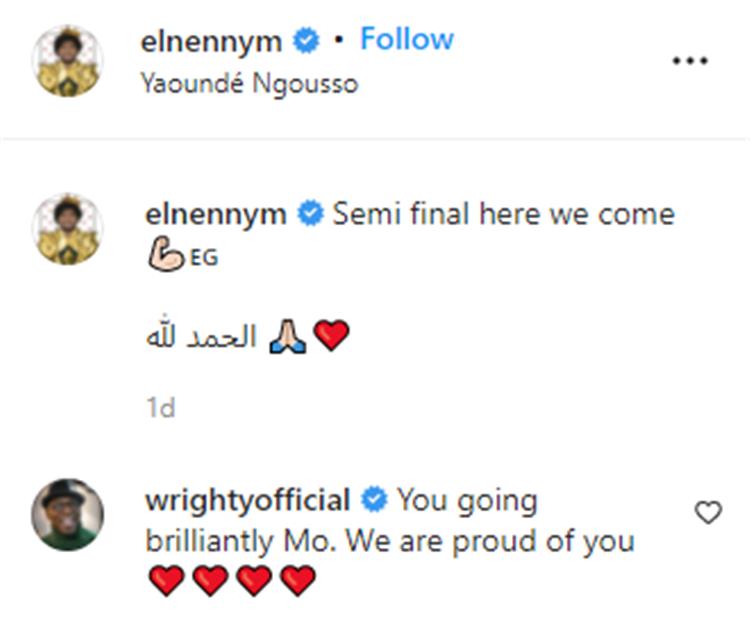 ونشر محمد النني عبر حسابه الشخصي بموقع “إنستجرام” قائلًا: “نصف النهائي، ها نحن قادمون”.