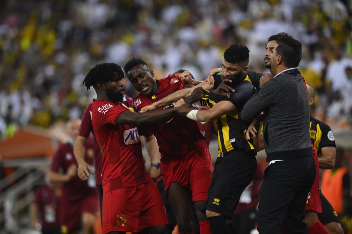 دخل لاعبو الفريق الأول لكرة القدم بنادي ضمك، في اشتباكات مع عبدالرحمن العبود، لاعب الفريق الأول لكرة القدم بنادي اتحاد جدة، خلال المباراة التي جمعت بينهما، اليوم الخميس.