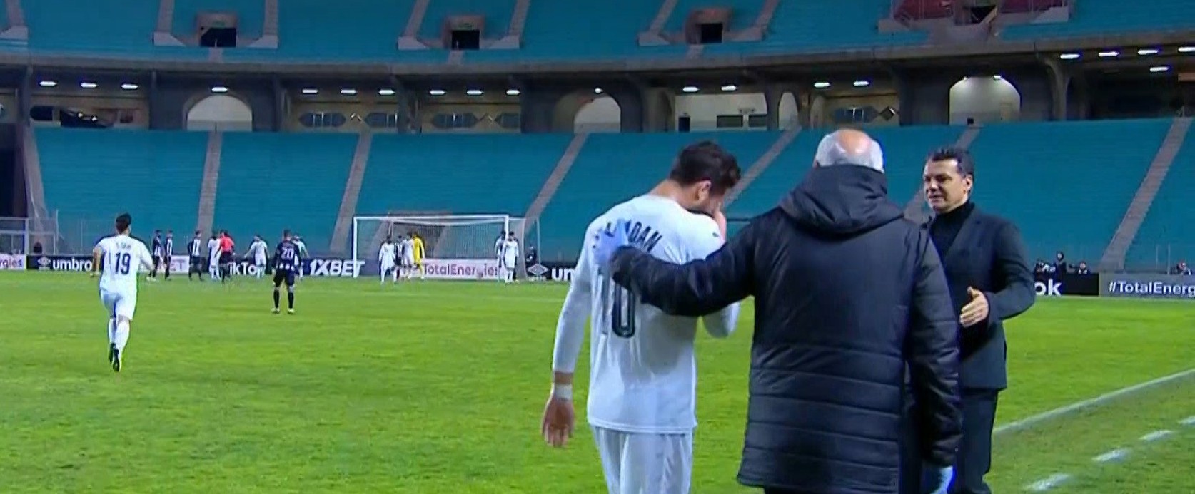 وغادر رمضان صبحي أرض الملعب باكيًا بعدما تعرض لإصابة قوية، ليتم استبداله بعبد الله السعيد.