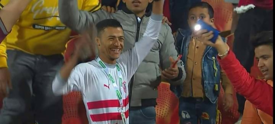 وتواجد مشجع زملكاوي في مدرجات النادي الأهلي، لمؤازرة المارد الأحمر أمام الرجاء المغربي في ذهاب ربع نهائي دوري أبطال أفريقيا.