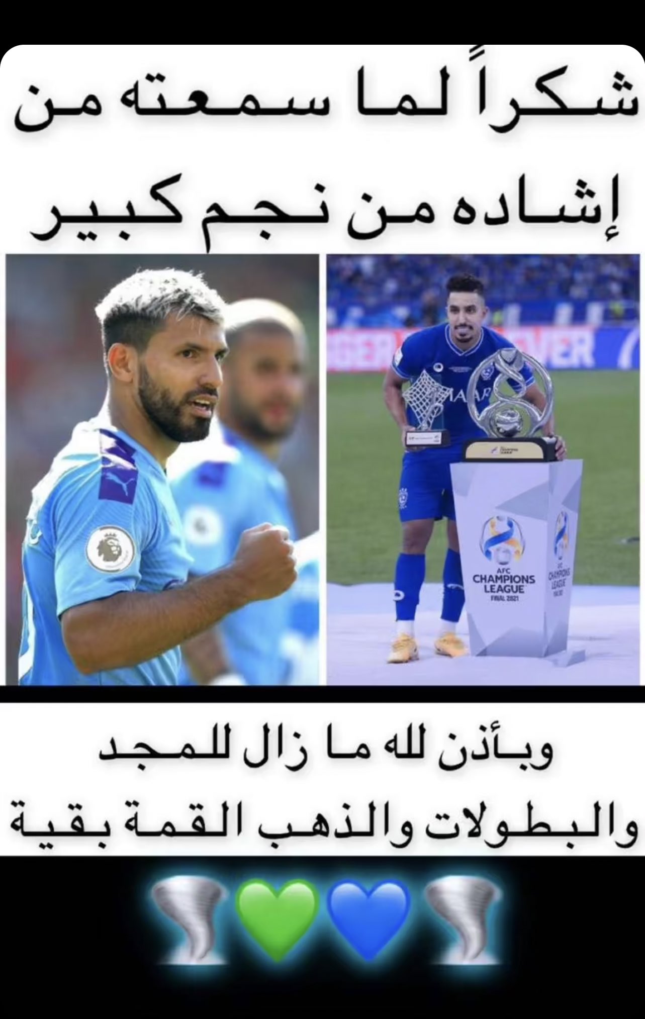 وحرص سالم الدوسري على الرد على أجويرو، حيث كتب عبر حسابه الرسمي على سناب شات، “شكرًا لما سمعته من إشادة من نجم كبير”.