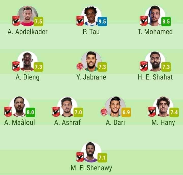 وشهد التشكيل المثالي لذهاب دور نصف نهائي دوري أبطال إفريقيا، الذي نشره موقع سوفا سكور، تواجد 9 عناصر من لاعبي الفريق الأول لكرة القدم بالنادي الأهلي.