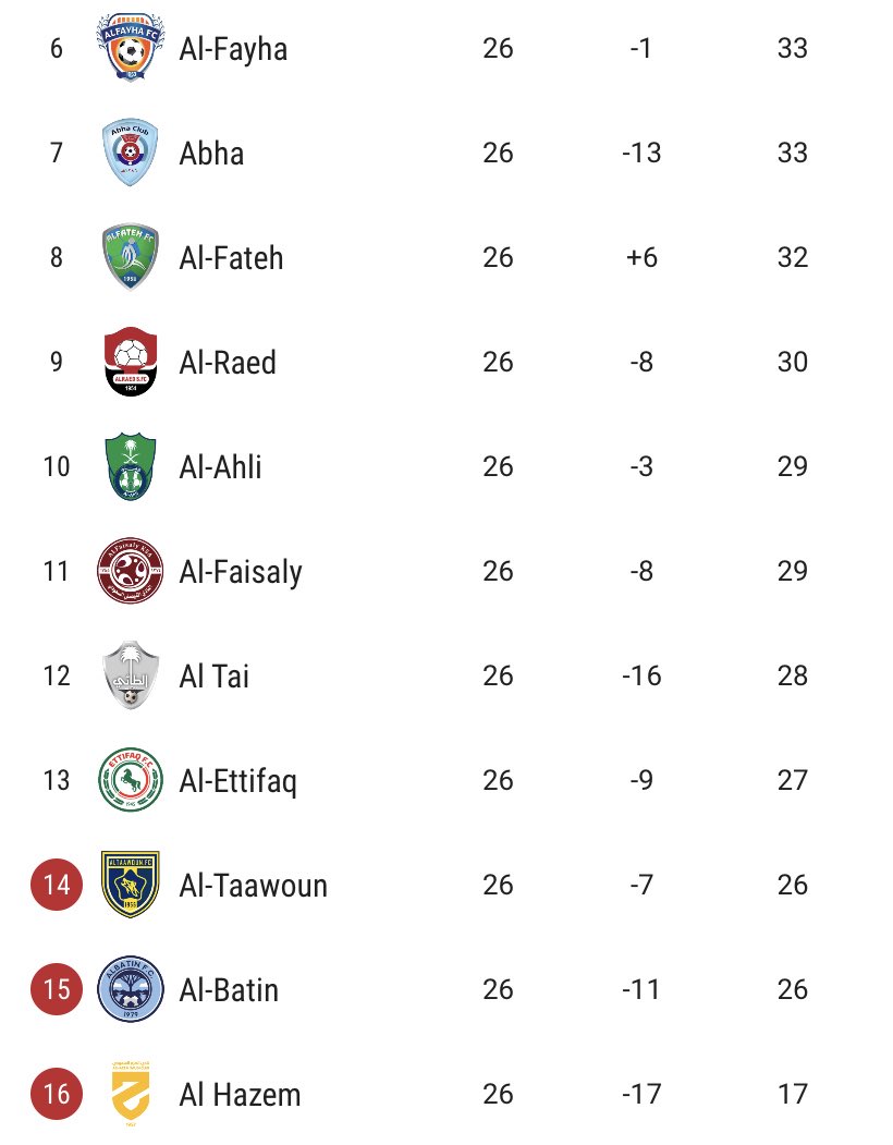 6-الفيحاء برصيد 33 نقطة