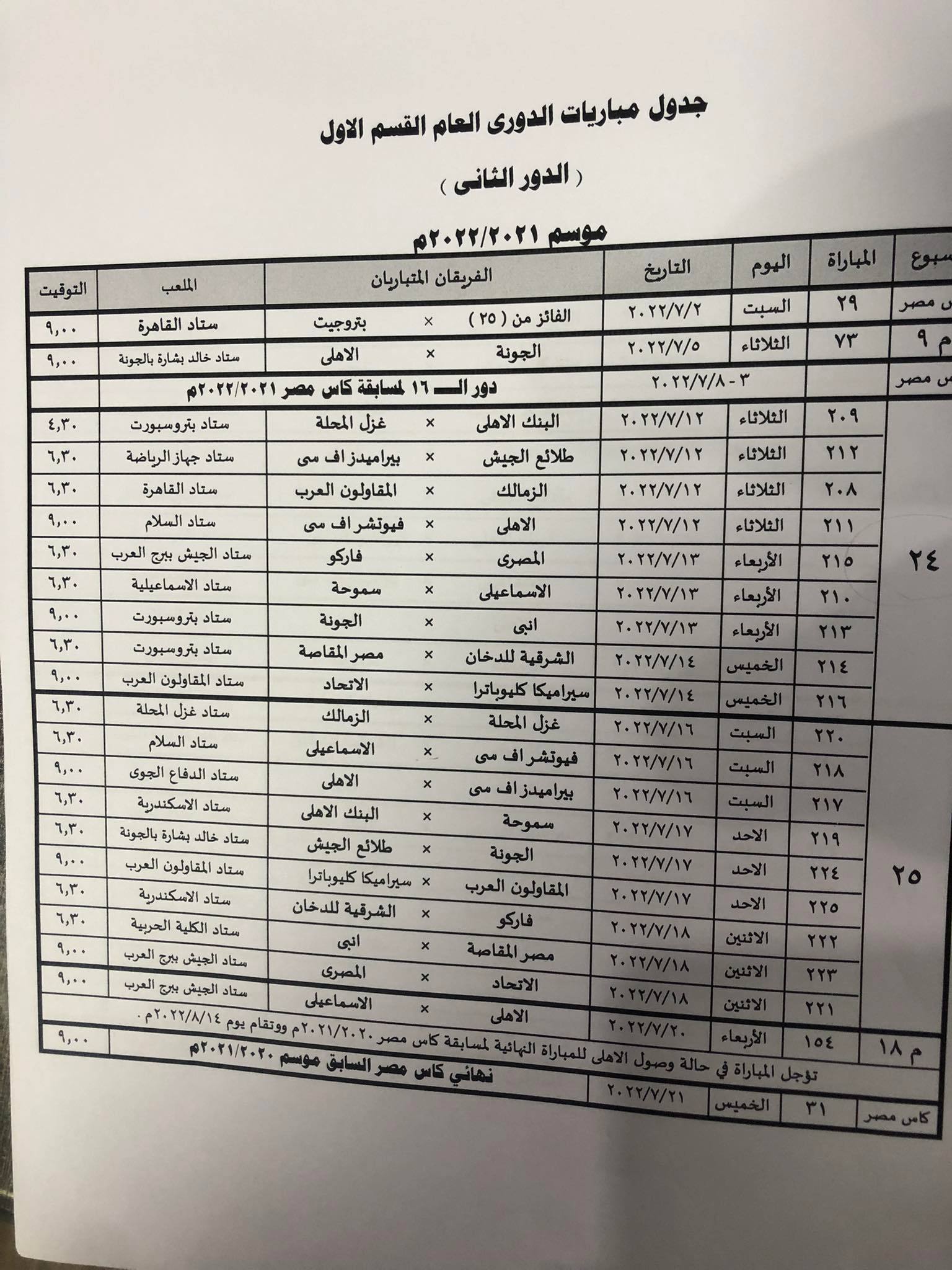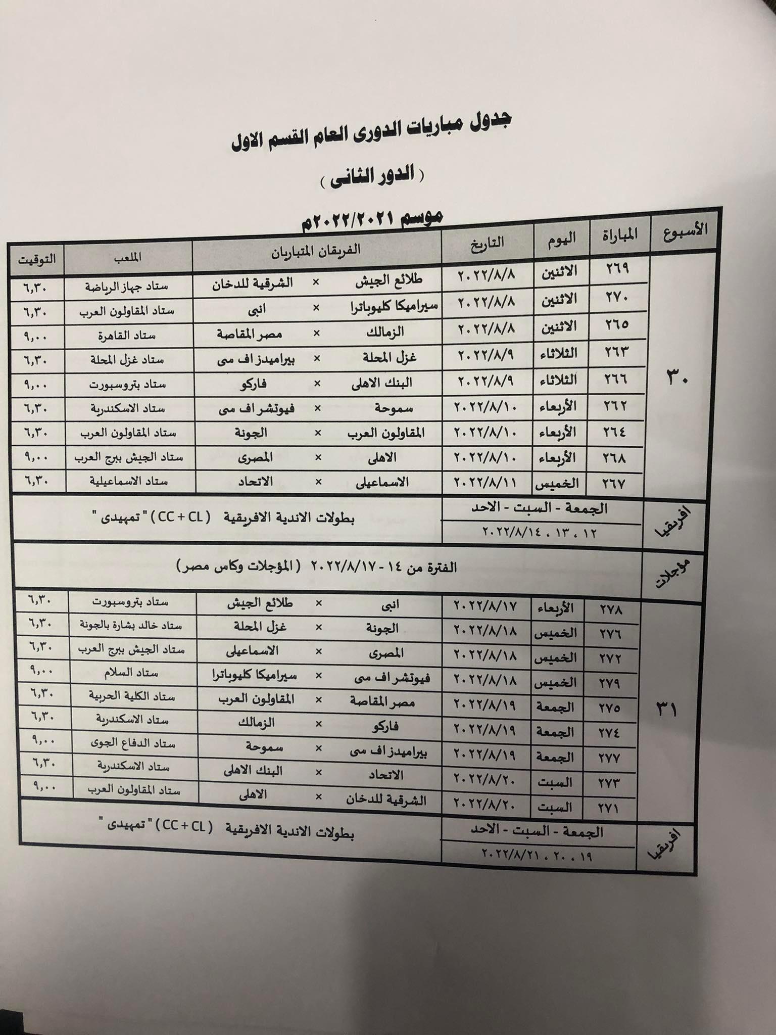 وأعلنت لجنة المسابقات عن المباريات المتبقية حتى نهاية منافسات الدوري المصري الممتاز، والتي ستكون خلال يومي 29 و30 أغسطس المقبل.
