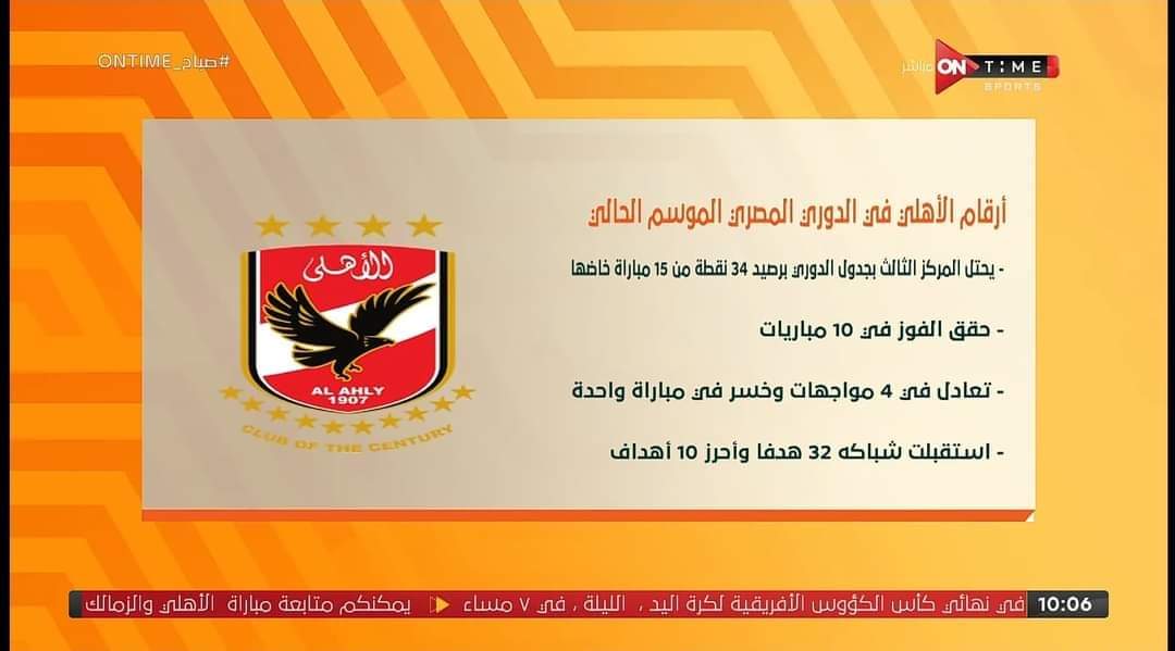 وشهد برنامج “فرح علي”، خطأ يخص أرقام النادي الأهلي في الدوري المصري خلال الموسم الحالي، حيث قامت باستعراضها.