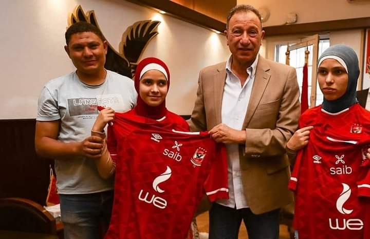 وقام الخطيب باستقبال الفتاتان والدهن في مكتبه وقام بتكريمهن ومنحهن قميص النادي الأهلي تقديرا لهن على حبهم للأهلي والتواجد في المدرجات لمساندته في مباريات الدوري.