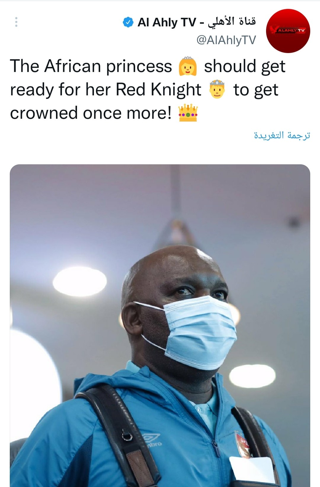 ونشرت قناة النادي الأهلي صورة للجنوب أفريقي بيتسو موسيماني المدير الفني وعلقت عليها ب”يجب أن تستعد الأميرة الافريقية لتتويج الأحمر مرة أخرى”.