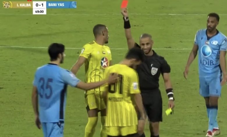 وتعرض جمال إسماعيل الحوسني، ووايلدر كارتاجينا، ومحمد يوسف، ثلاثي الفريق الأول لكرة القدم بنادي اتحاد كلباء، للطرد خلال مباراة بني ياس.