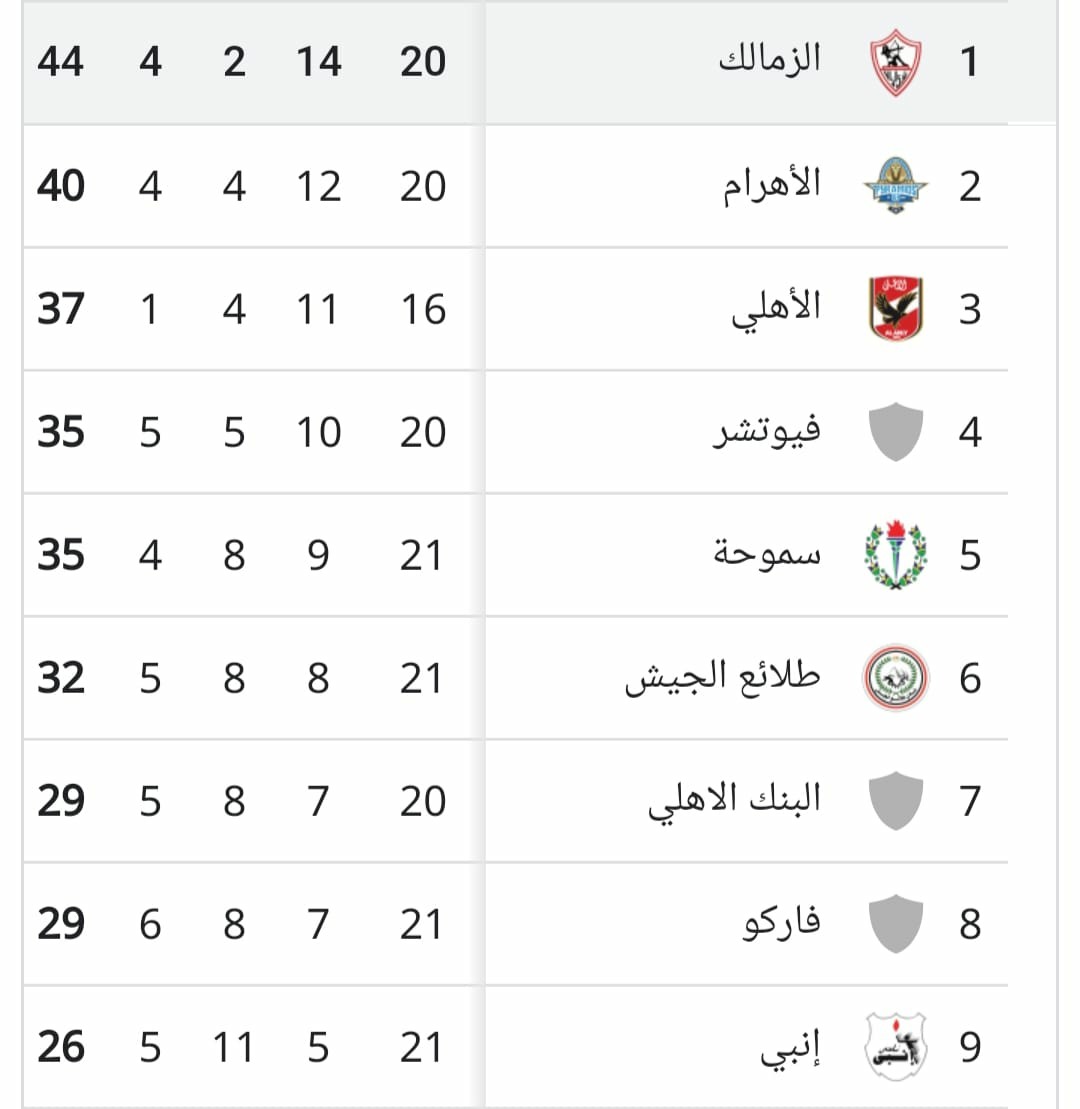 ورفع الفريق الأول لكرة القدم بنادي الزمالك رصيده إلى 44 نقطة في صدارة جدول ترتيب الدوري المصري الممتاز، ويليه فريق بيراميدز في المركز الثاني برصيد 40 نقطة، والأهلي في المركز الثالث برصيد 37 نقطة، بينما يتواجد الإسماعيلي في المركز الـ16 برصيد 18 نقطة.