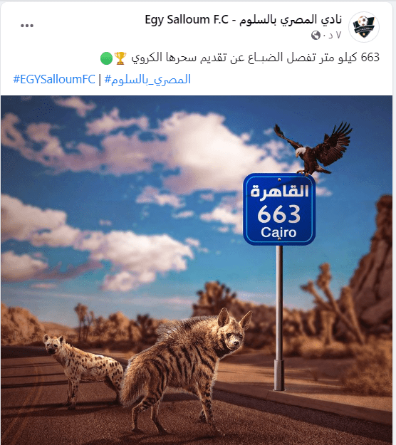 ونشرت الصفحة الرسمية للنادي رسالة تحفيز للاعبيها قبل السفر للقاهرة لمواجهة المارد الحمر حيث كتبت: ” 663 كيلو متر تفصل الضباع عن تقديم سحرها الكروي”.