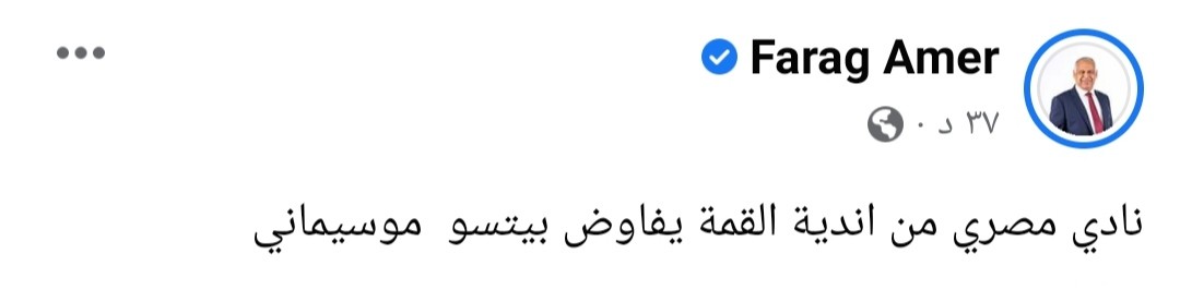 وكتب فرج عامر عبر حسابه الرسمي بموقع التواصل الاجتماعي “فيس بوك”: “نادي مصري من أندية القمة يفاوض بيتسو موسيماني بعد رحيله عن النادي الأهلي”.