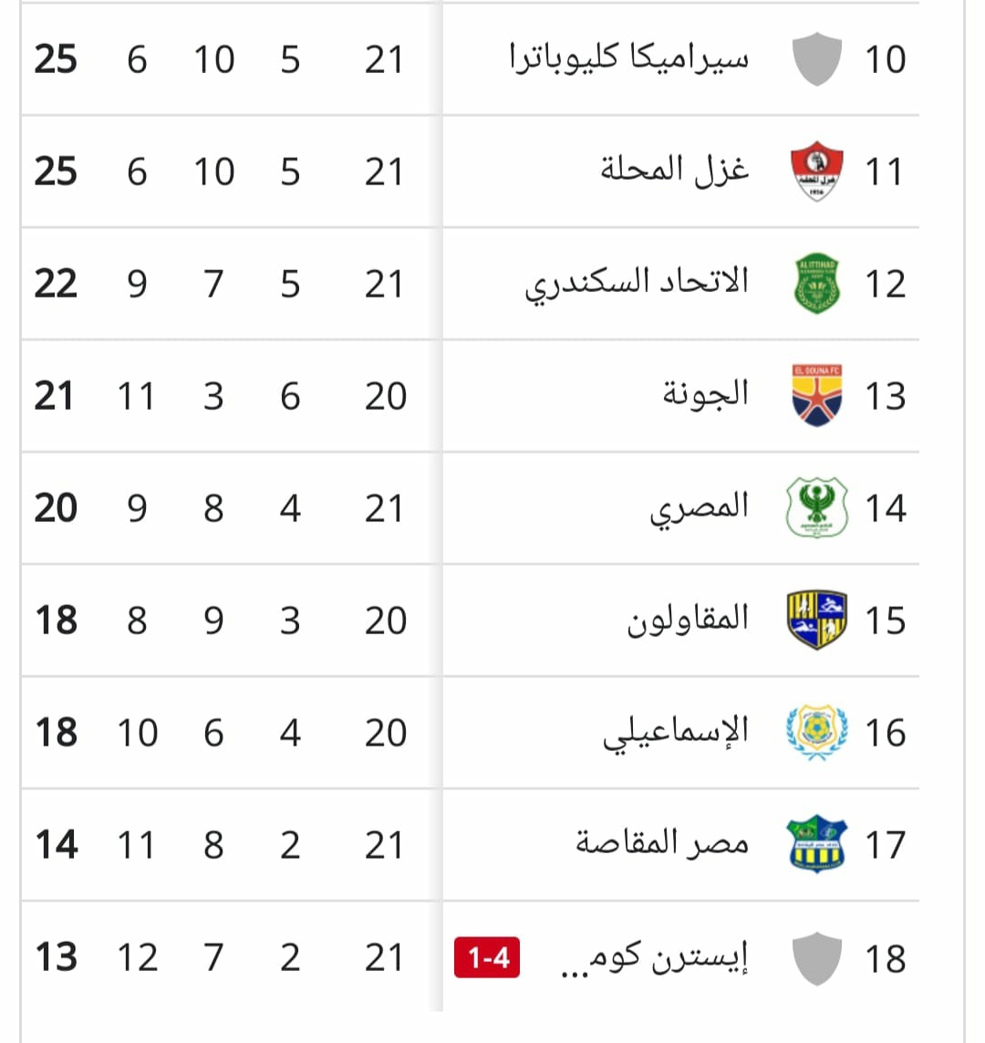 جدول ترتيب الدوري المصري بعد فوز الأهلي على إيسترن كومباني