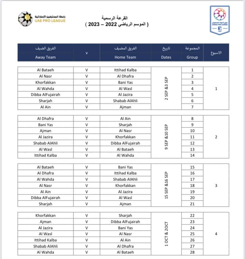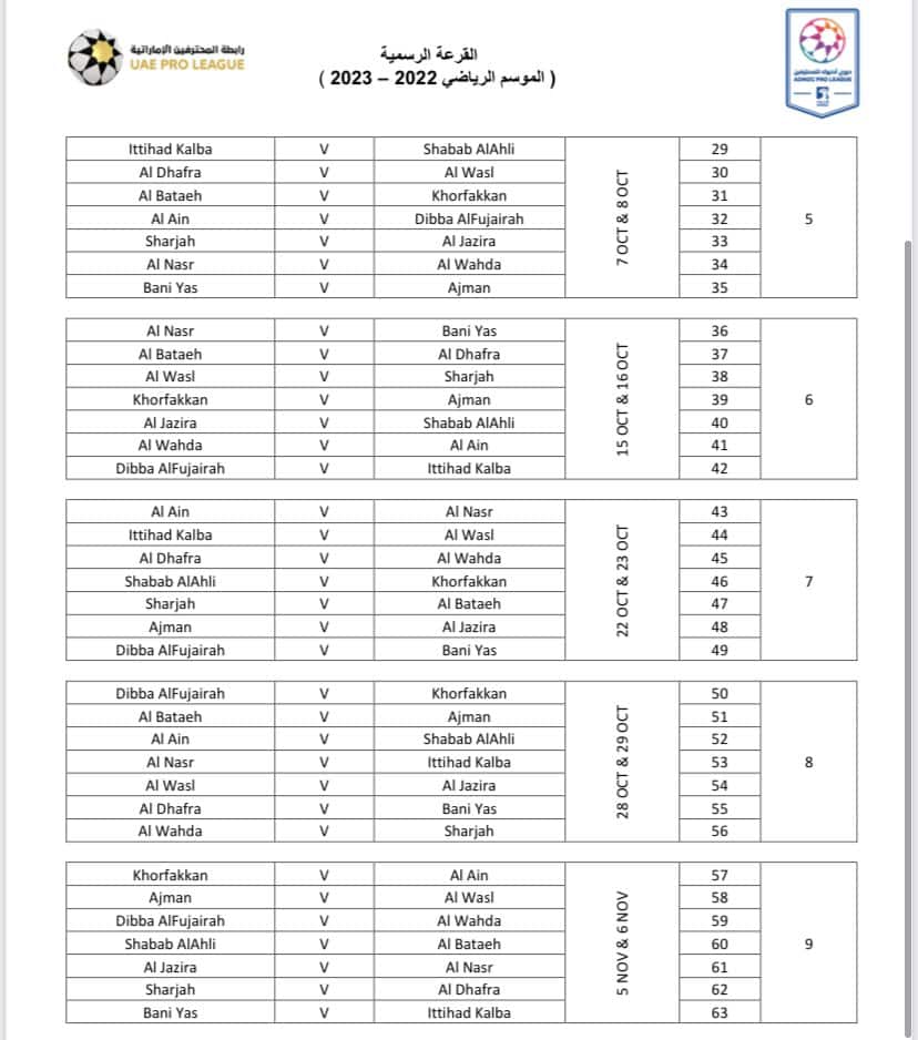 الكشف عن جدول مباريات الموسم الجديد من دوري أدنوك للمحترفين