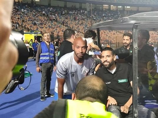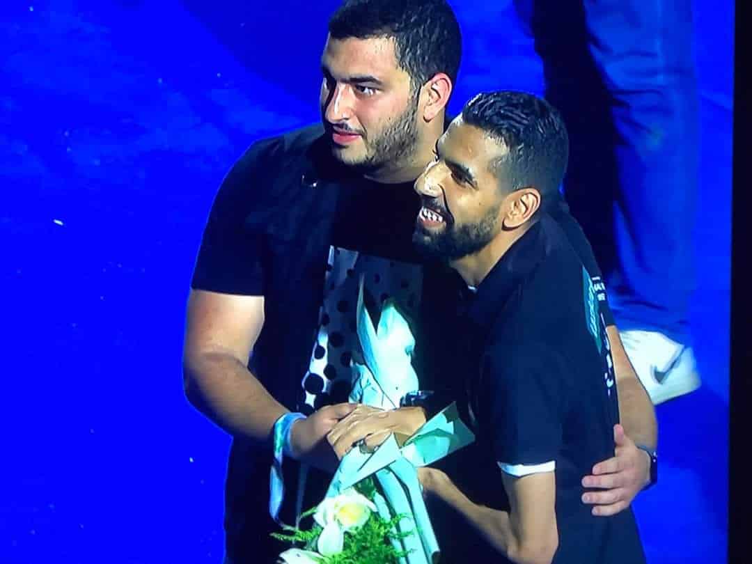 وحرص محمود شيكابالا، لاعب الفريق الأول لكرة القدم بنادي الزمالك، على احتضان مؤمن زكريا، أثناء تجوله في الملعب.