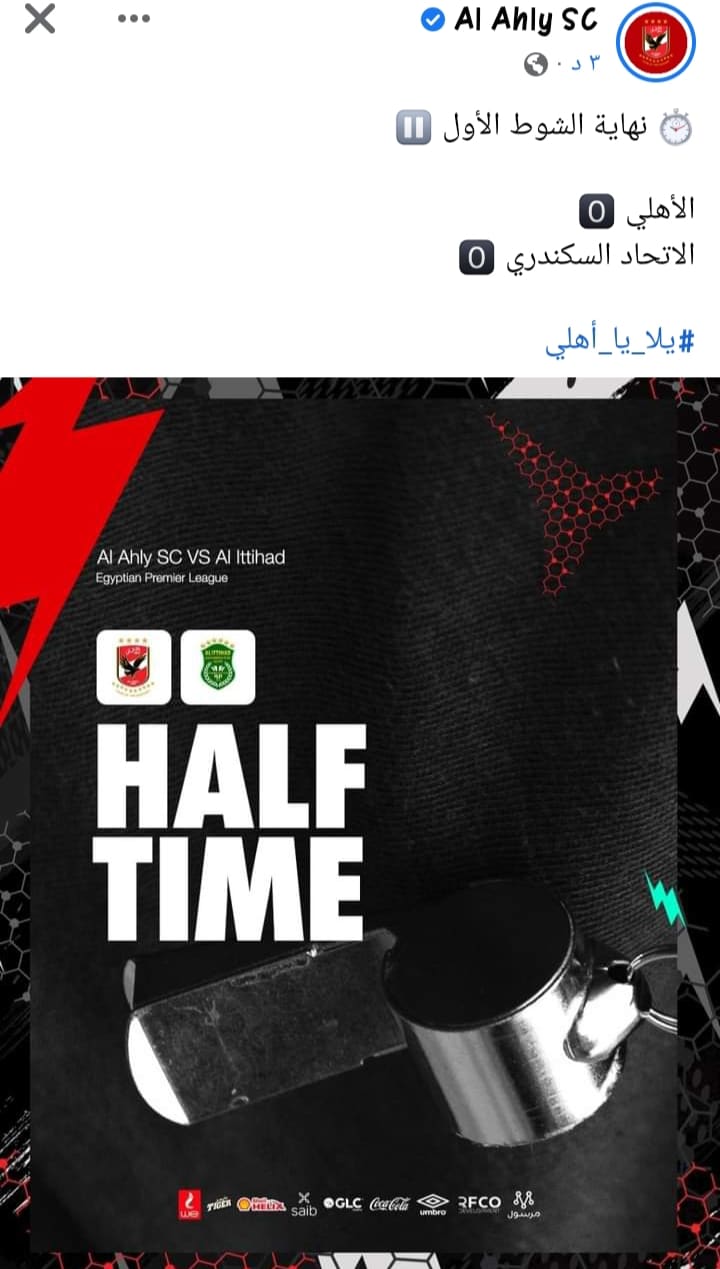 ارتكب الحساب الرسمي للنادي الأهلي عبر موقع التواصل الاجتماعي فيسبوك، خطأ فادحًا، بعد انتهاء الشوط الأول مباراة الأحمر أمام الاتحاد السكندري.