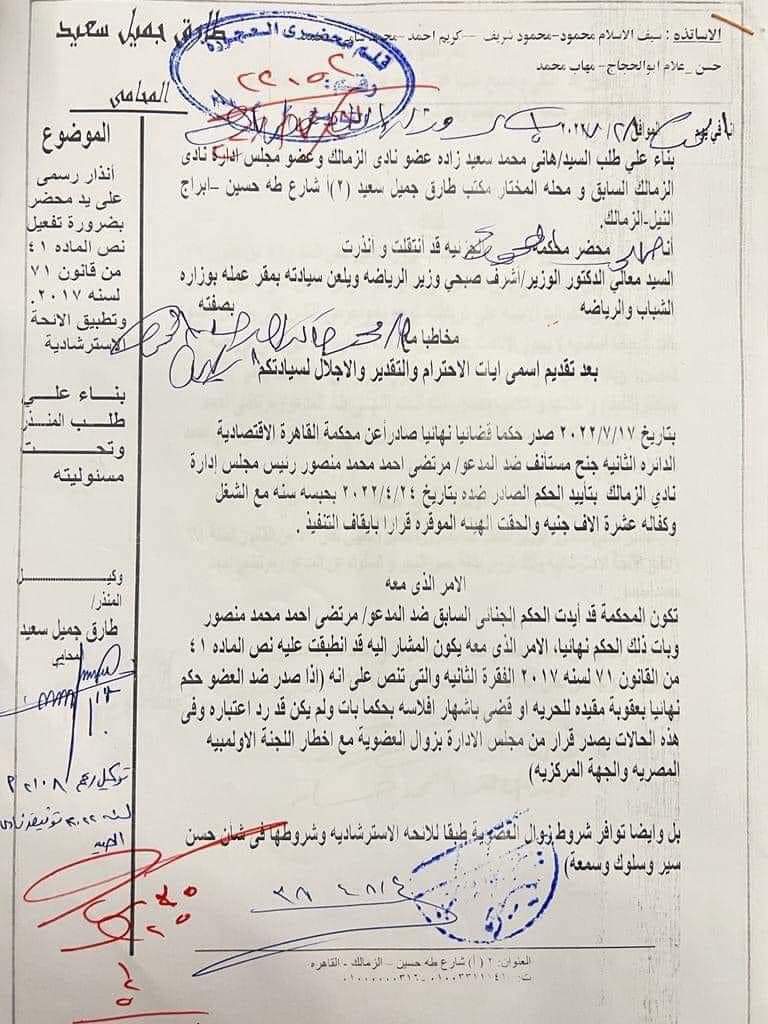 وقام هاني زادة، بتقديم طلب رسمي لمكتب أشرف صبحي وزير الشباب والرياضة، للمطالبة بعزل مرتضى منصور.