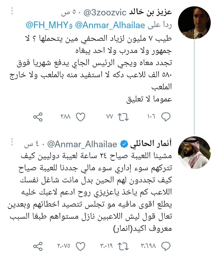 ورد أنمار الحائلي بشكل قوي على هذه الانتقادات، مؤكدًا أن الإدارة تعمل بكل جد وتبذل قصارى جهدها من أجل النادي.