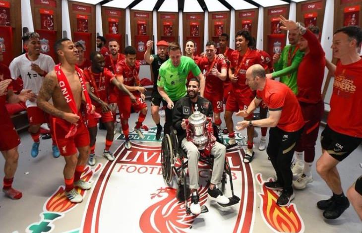 واختتم:” يورجن كلوب هو من قام بدفعي بالكرسي المتحرك وقال لي أن احتفل مع اللاعبين”.