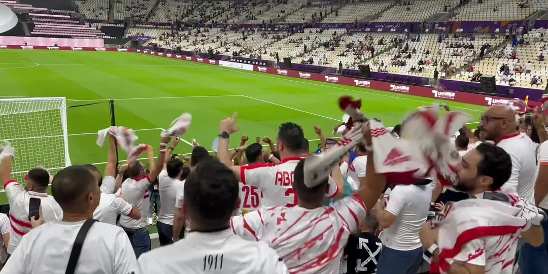 هتفت جماهير الفريق الأول لكرة القدم بنادي الزمالك المتواجدة في ستاد لوسيل للاعبيها قبل مباراة الهلال في كأس يوبر لوسيل.
