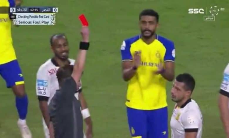 وتعرض طارق حامد لاعب وسط اتحاد جدة للطرد في الدقيقة 42 بعد العودة إلى تقنية الفيديو «VAR»، بعد التداخل بشكل قوي المهاجم الكاميروني فينست أبوبكر.