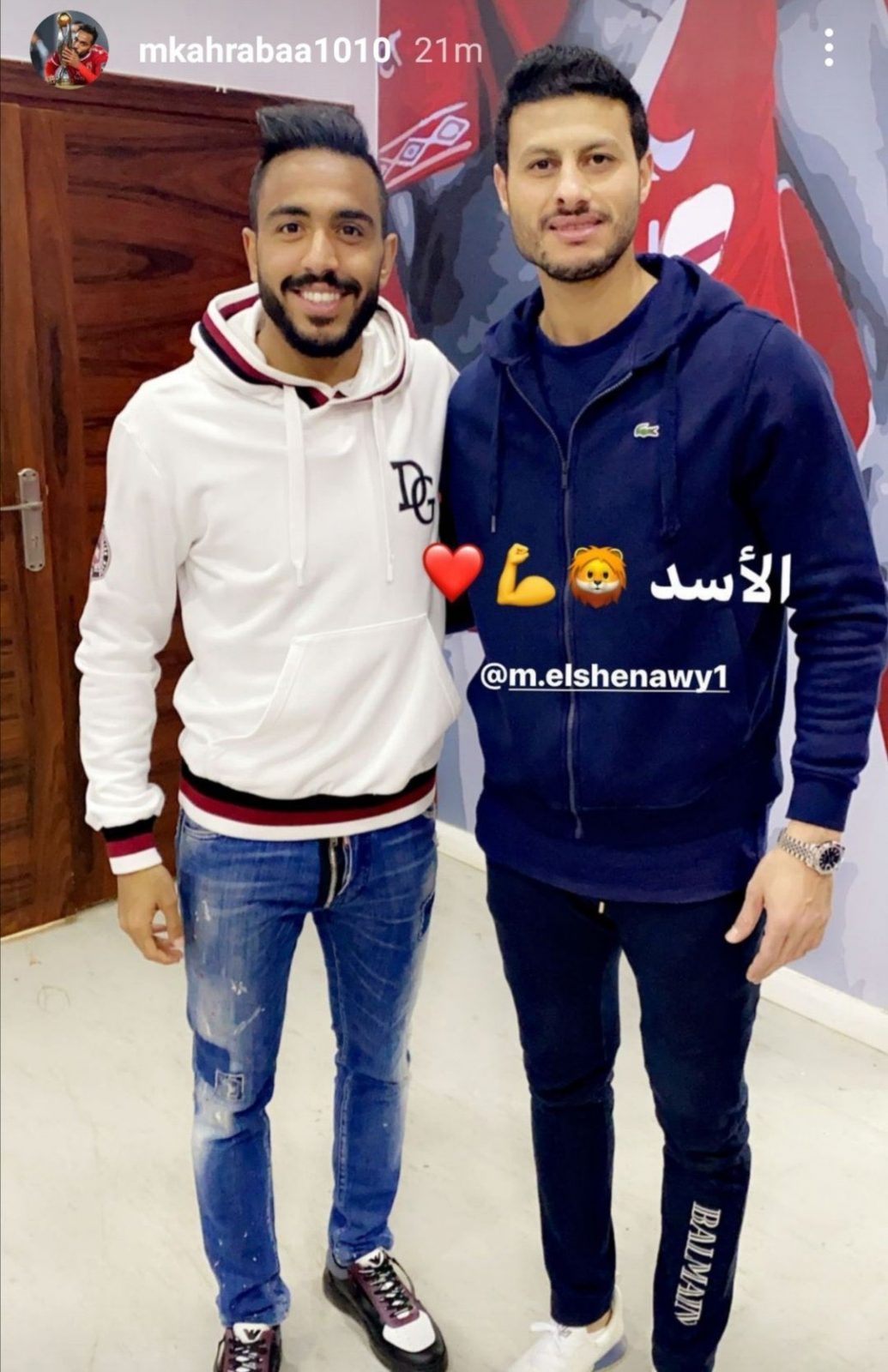ونشر كهربا صورة رفقة الشناوي على موقع التواصل الاجتماعي :”انستجرام” معلقًا وواصفقًا حارس مرمى النادي الأهلي بالأسد.