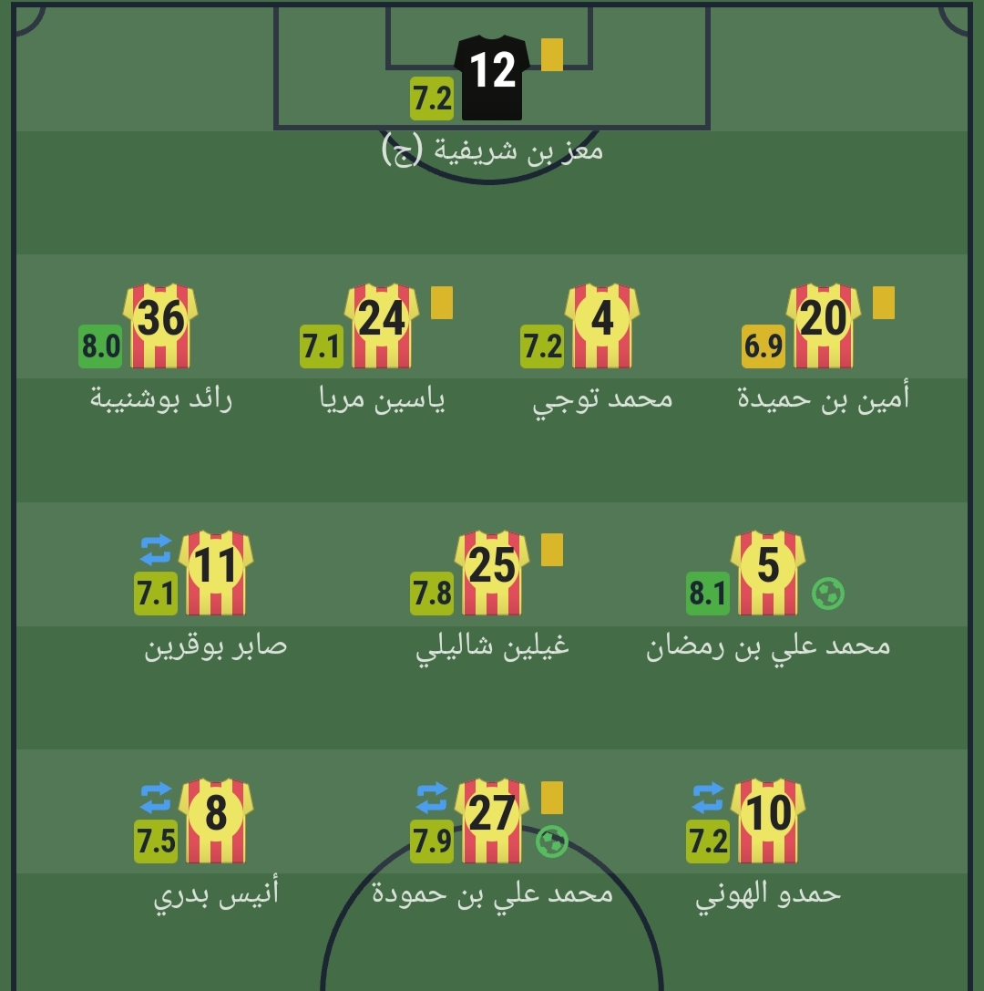 بينما حصل على أعلى تقييم في المباراة من فريق الترجي هو محمد علي بن رمضان بـ 8.1، يليه رائد بوشنيبة بـ8.0.