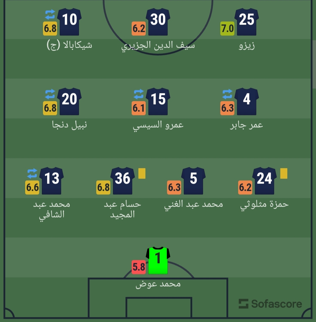 وحصل محمد عواد على تقييم 5.8، كأقل لاعب في المباراة والزمالك.