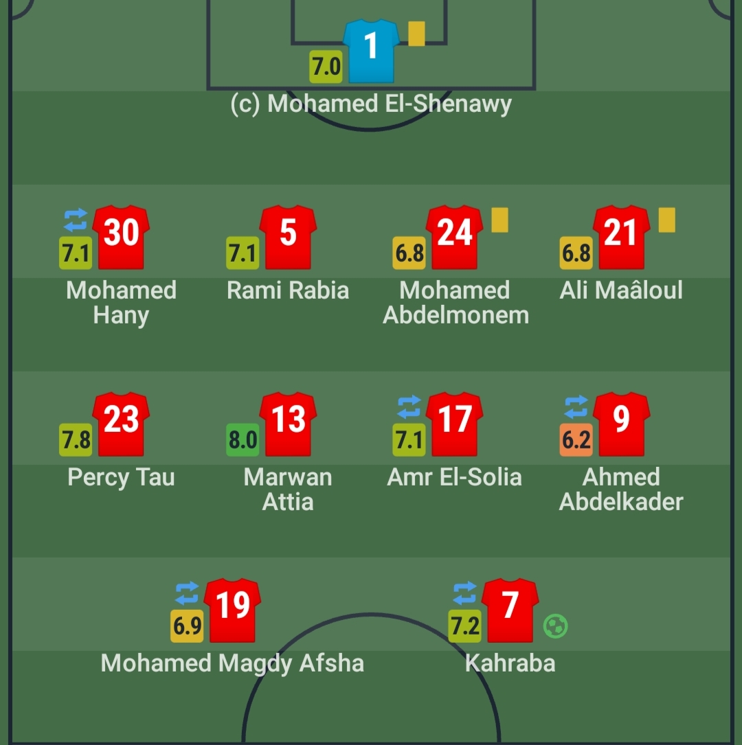 وبحسب الشبكة فإن بيرسي تاو حصل على تقييم مميز بـ 7.8، فيما كان أحمد عبد القادر أسوأ لاعب في المباراة بتقييم 6.2.