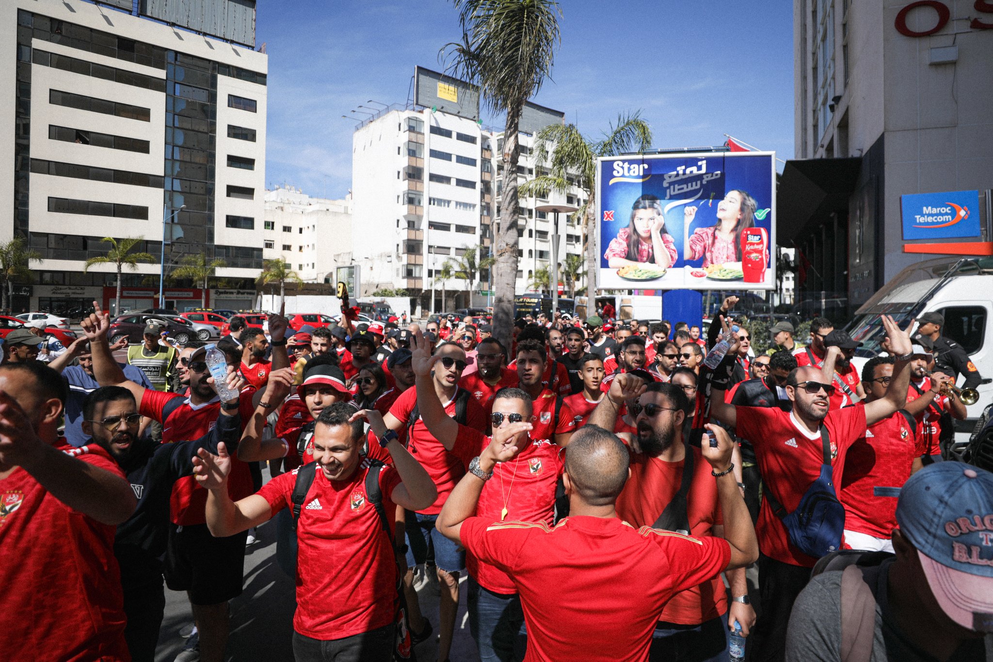 حرص عدد من جماهير النادي الأهلي في الدار البيضاء، للاحتشاد أمام فندق إقامة اللاعبين قبل مواجهة الوداد في نهائي دوري أبطال أفريقيا.