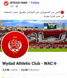 ونشرت أكبر صفحات المشجعين لنادي الوداد البيضاوي المغربي منشور للمطالبة من الصفحات الرسمية حجبها بشكل مؤقت عن مؤقت.