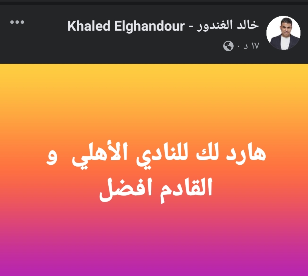وكتب خالد الغندور، عبر حسابه الرسمي على موقع التواصل الاجتماعي “فيس بوك”:”هارد لك للنادي الاهلي والقادم أفضل”.