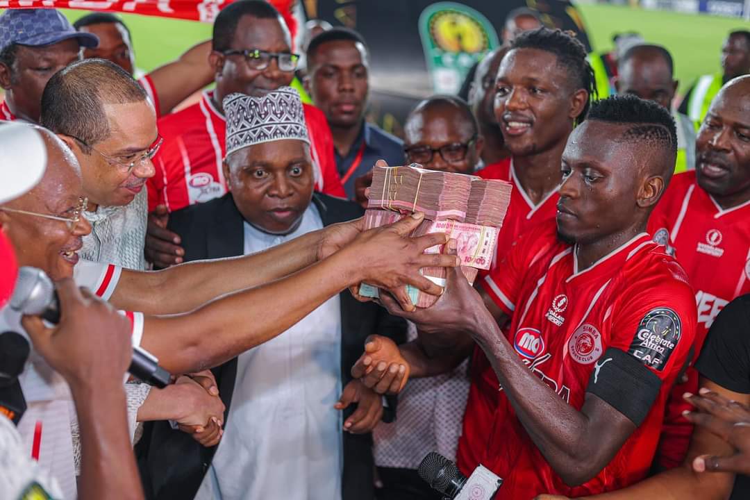 وتسلم كل لاعبي سيمبا مكافأة التأهل إلى ربع نهائي دوري أبطال أفريقيا في أرض الملعب عقب الفوز على جالاكسي البوتسواني.