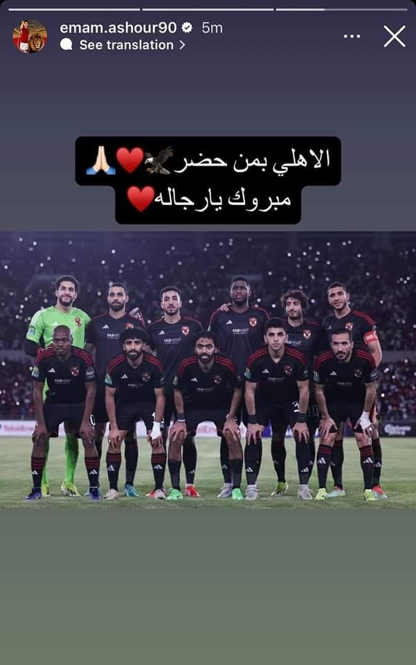 ونشر إمام عاشور، صورة لفريق الاهلي من المباراة، عبر حسابه الرسمي على موقع التواصل الاجتماعي “إنستجرام”.