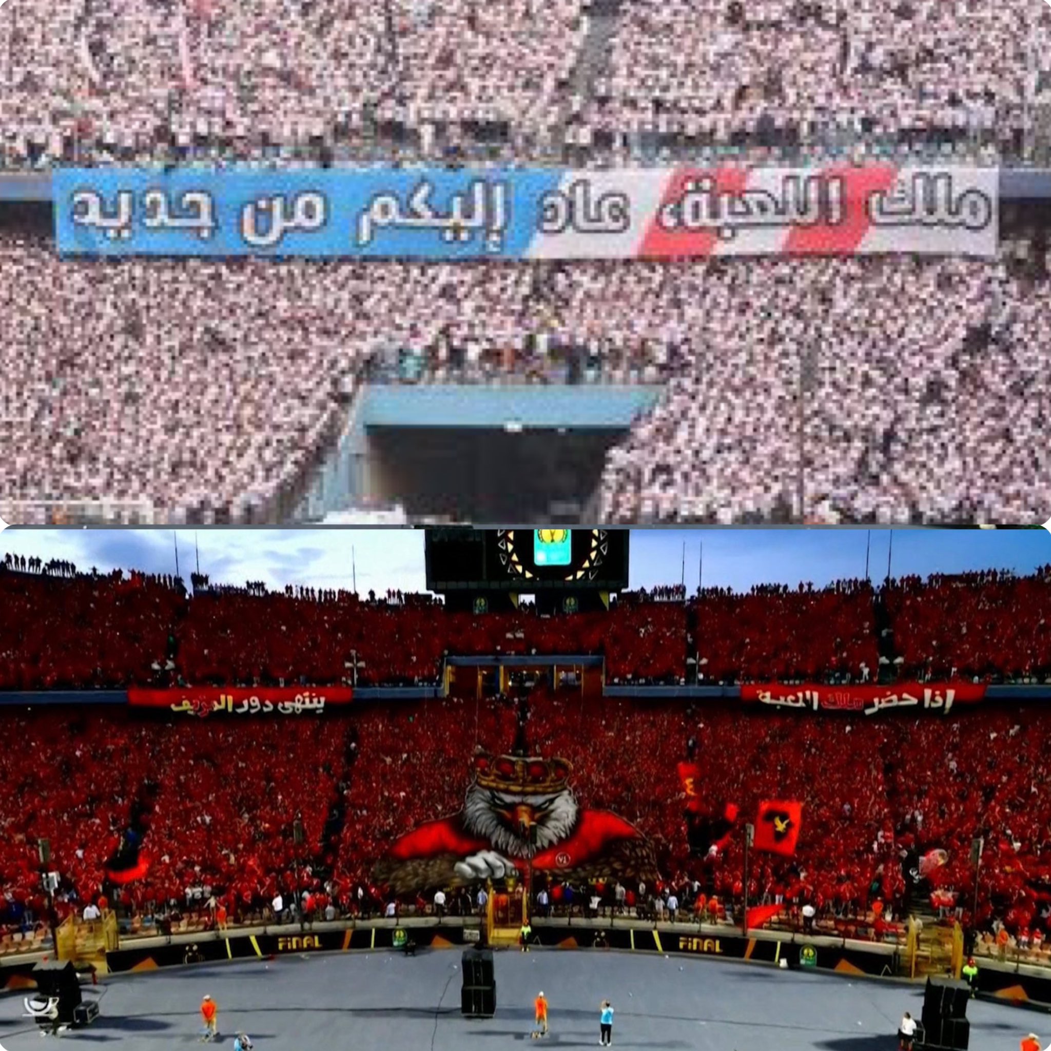 أشعل تيفو “الملك المزيف” الأجواء بين جماهير الاهلي ونظيرتها الزمالك، والتي تم رفعها من قبل مشجعي الأحمر في مباراة إياب نهائي دوري أبطال أفريقيا.