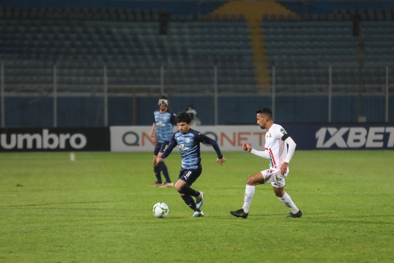 ونجح مصطفى فتحي في إحراز هدف التقدم لفريق بيراميدز في الثانية 22، من المباراة، بعد تمريرة من رمضان صبحي وصلت لمحمد حمدي، الذي حولها عرضية لـ فتحي ليسددها في الشباك من داخل منطقة الجزاء.