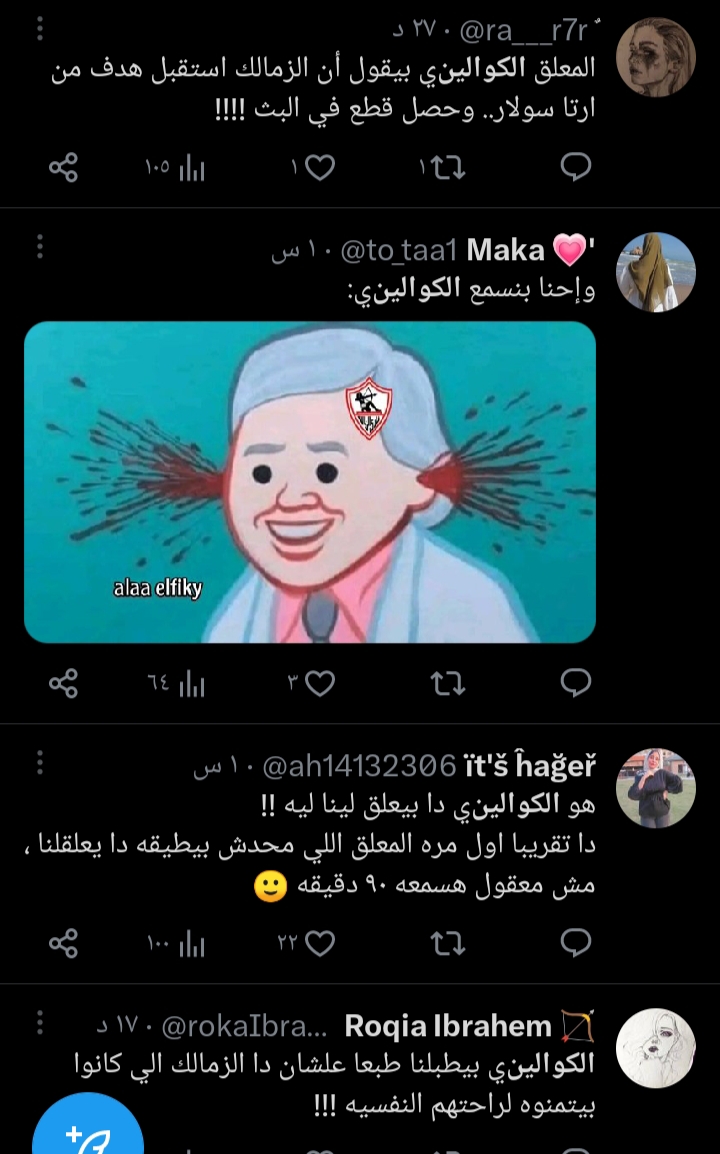 وأكدت جماهير الزمالك في تغريدات عبر موقع التواصل الاجتماعي تويتر، أنها غير سعيدة بتعليق الكواليني وأبدت انزعاجها من تعليقه على المباراة.