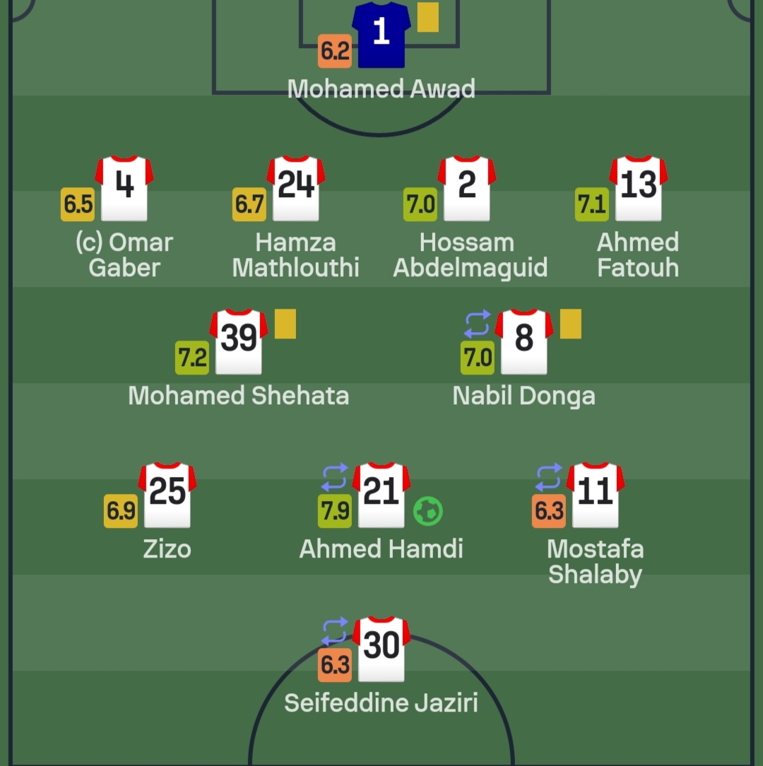 وبحسب سوفا سكور، فإن أحمد حمدي، كان أفضل لاعبي الزمالك في المباراة بتقييم 7.9، يليه محمد شحاتة بـ7.2.