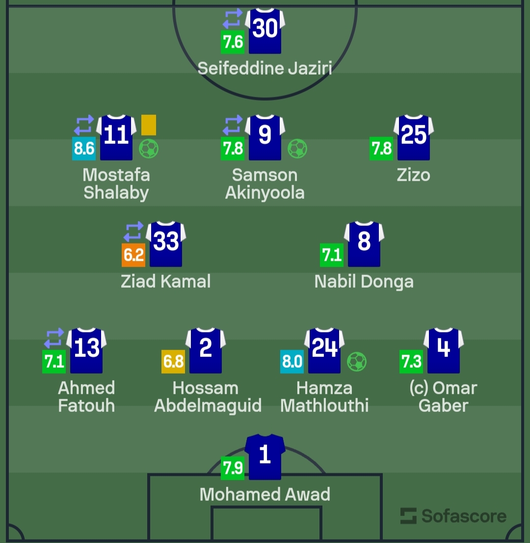 وحصل محمد عواد، على تقييم 7.9، يليه أحمد سيد زيزو، وسامسون أكينيولا، بـ7.8 درجة .