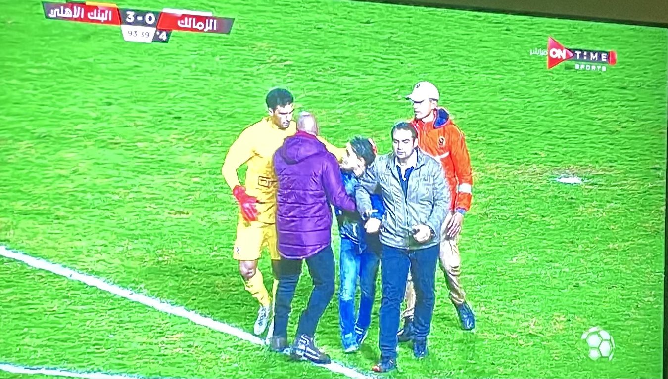 اقتحم مشجع زملكاوي ملعب مباراة الأبيض والبنك الأهلي، والتي جمعت الفريقين في كأس رابطة الأندية اليوم الأحد.