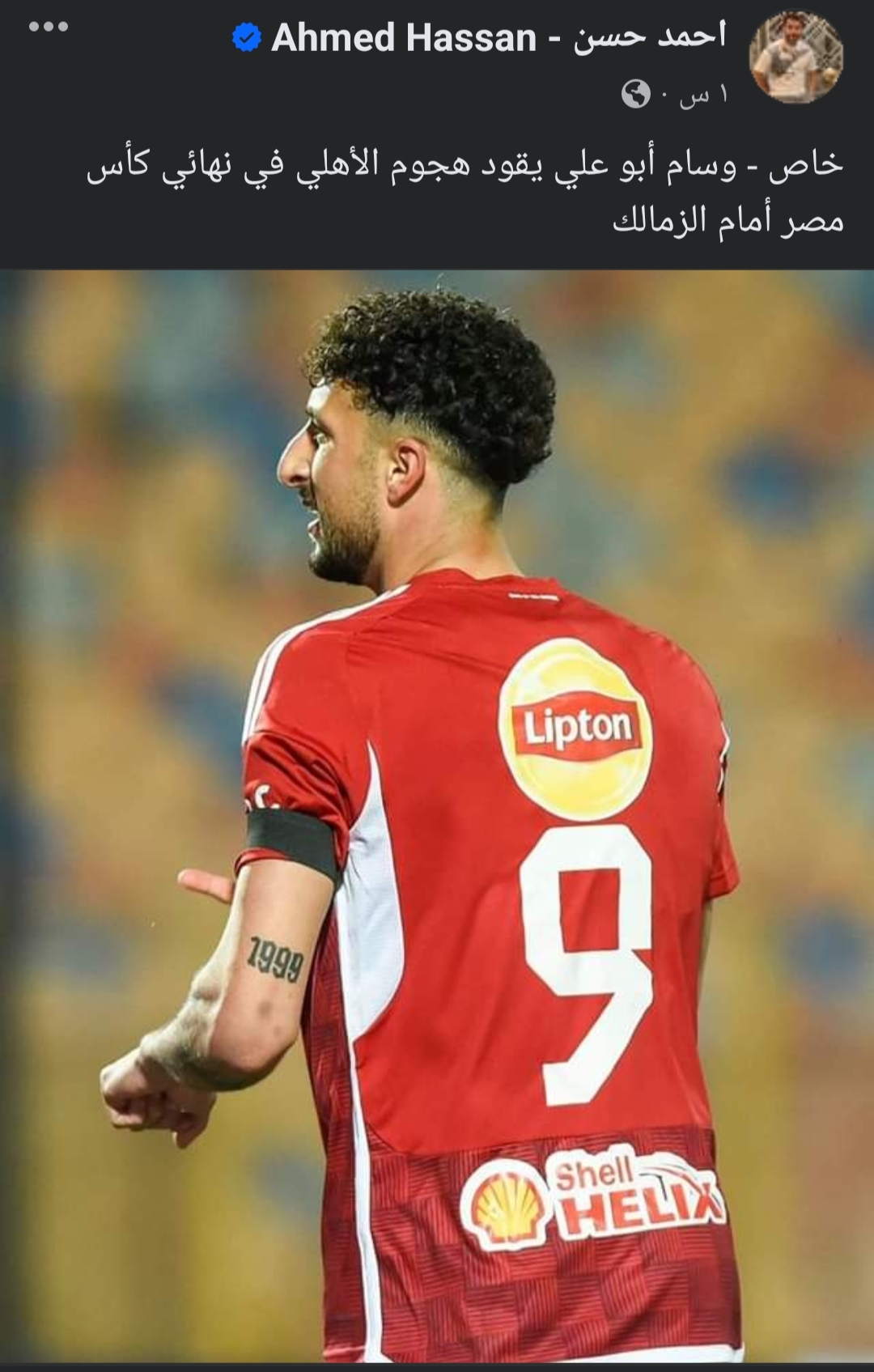 وكتب حسن، عبر حسابه الرسمي على موقع التواصل الاجتماعي “فيس بوك”:”خاص – وسام أبو علي يقود هجوم الاهلي في نهائي كأس مصر أمام الزمالك”.