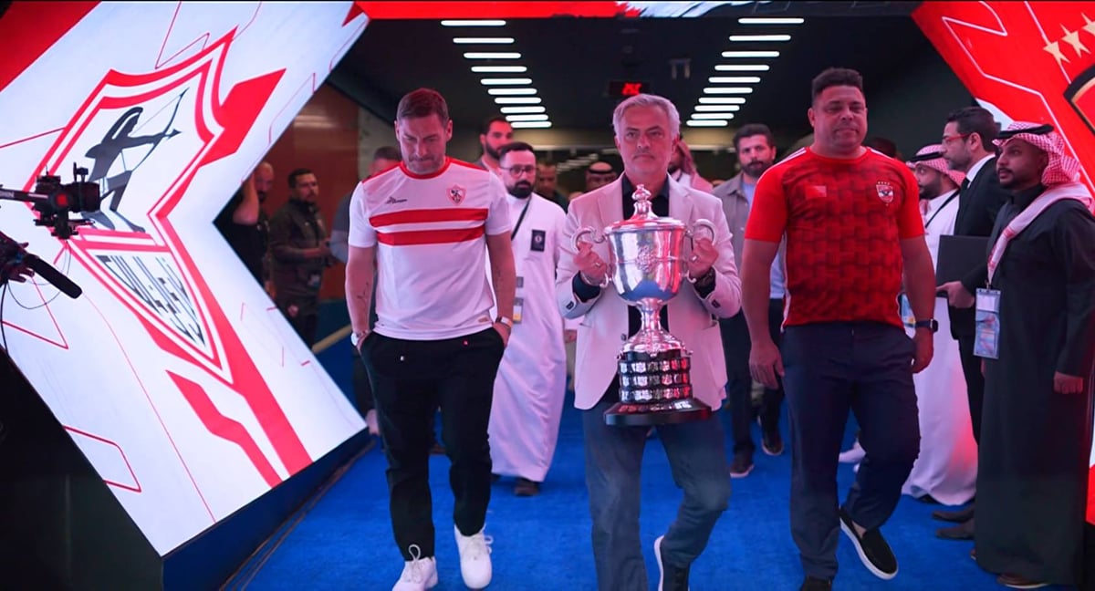 ودخل المدرب الإيطالي جوزيه مورينيو، إلى أرضية ملعب مباراة الاهلي ضد الزمالك، وهو يحمل كأس مصر، ويجاوره البرازيلي رونالدو، والإيطالي توتي.