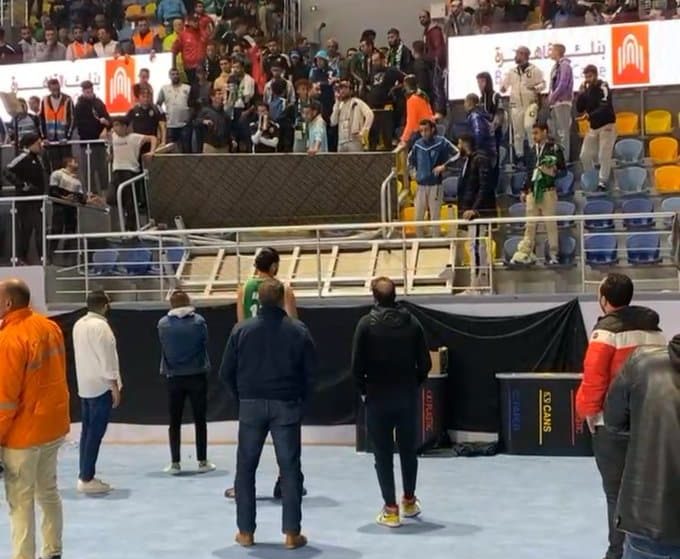 وشهدت مباراة الأهلي والاتحاد السكندري في كأس سوبر السلة، سقوط مدرج تجاه مقاعد جمهور الفريق السكندري، وحاول بعض من الحضور إنقاذ الموقف ومحاولة إبعاد الجمهور المتواجد في نفس مكان سقوط المدرج.
