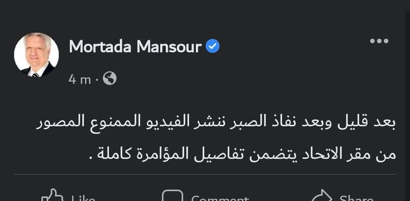 بينما جاء رد محمد الماشطة، المستشار القانوني لاتحاد الكرة على تهديدات رئيس الزمالك بنشر الفيديو الخاص بالمؤامرة على النادي، بمنشور مماثل عبر حسابه الشخصي بموقع التواصل الاجتماعي “فيس بوك” قبل أن يقوم بحذفه هو الآخر كالتالي: