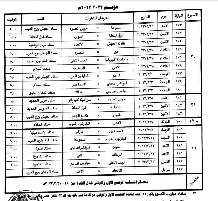 الأهلي ضد الداخلية الأسبوع العشرين يوم 28 فبراير.